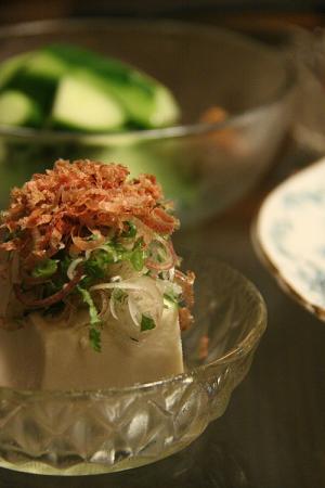 しばしば登場する、鯵の茗荷巻き焼き、と、めかぶときゅうりの酢の物。