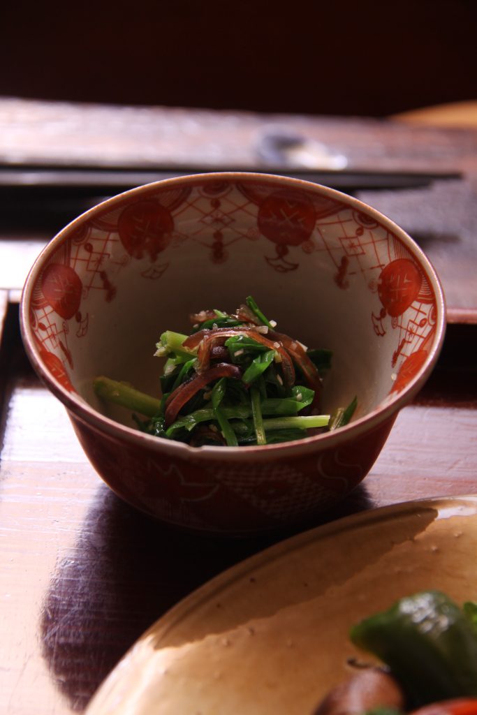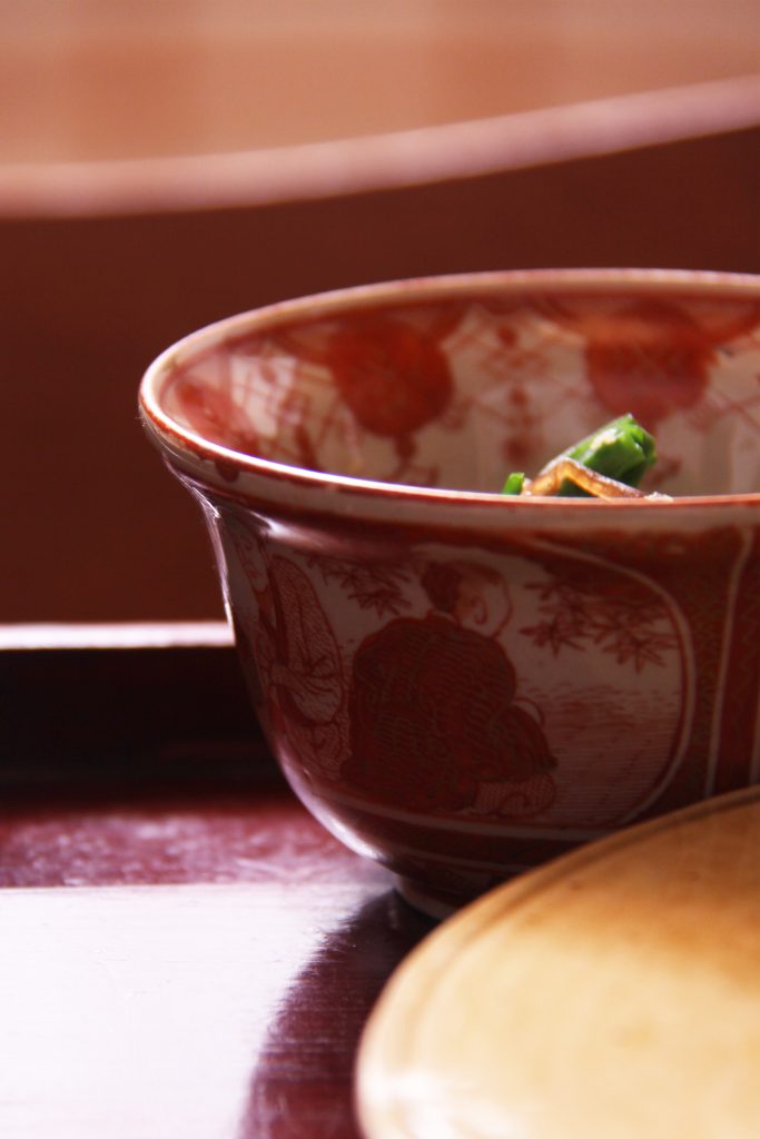 よく使っているこの器は、以前旅行で金沢に来た時に、骨董フェアみたいなところで買った九谷の赤絵なんだけど、