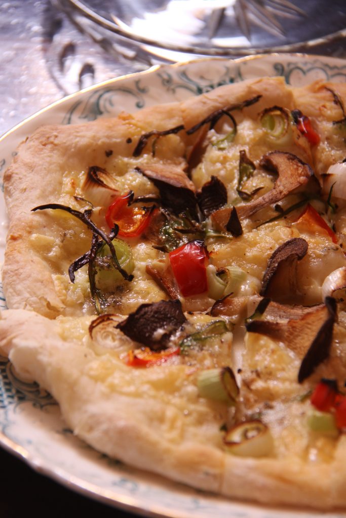 ピザの日のもう一枚はこんなキノコと野菜のピザ。
