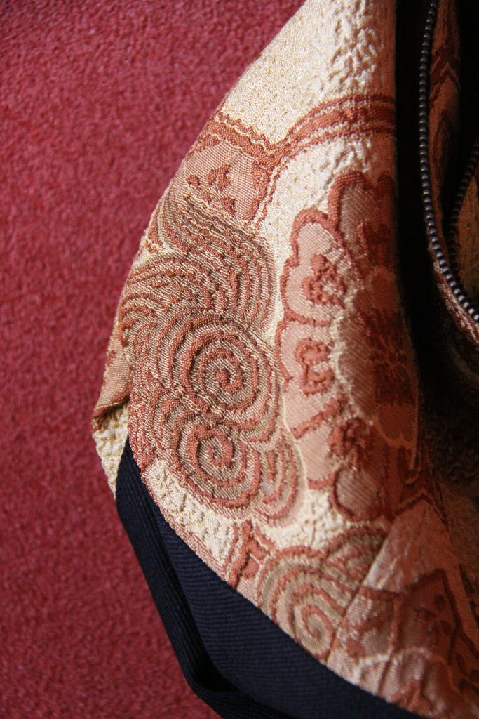 ずいぶん前に買った帯地で、その時も、こういう織り方があるのか〜、と感心したもんだけど、改めて見てもやっぱり驚く。