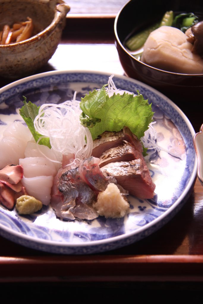 近江町で、地物のカツオを買った後に、ほかの店で朝獲れのウマヅラハギが安かったので、それを刺身用に捌いてもらって、でもそれは600円と安かったからそれだけじゃ申し訳ないと思って、同じく朝獲れのアジも買って、夕飯のお造りは豪勢になちゃうなーと思っていたら、盛り付けに失敗してこんな感じ。