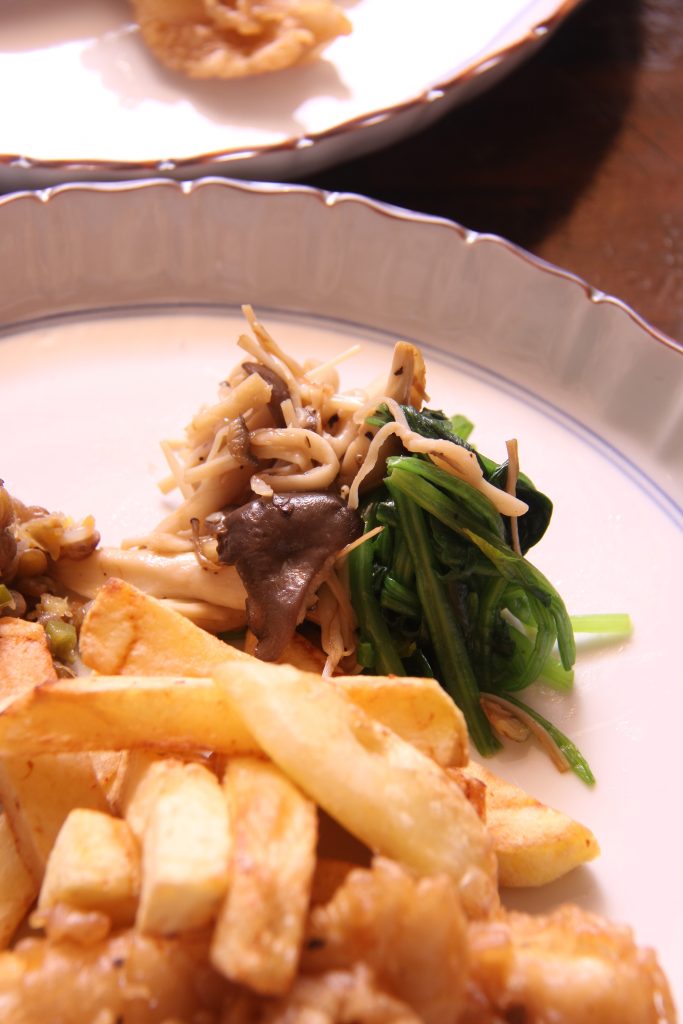 キノコとほうれん草のソテー。