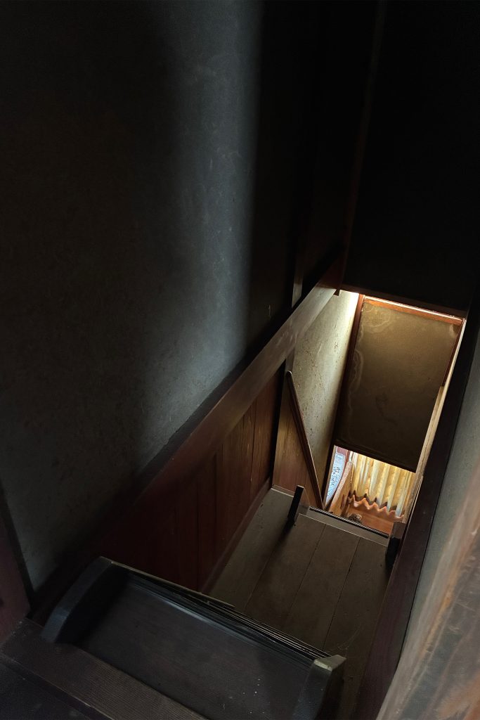2階は途中で大改造したけど、ここら辺は昔のままの、薄暗くて危険な急階段。