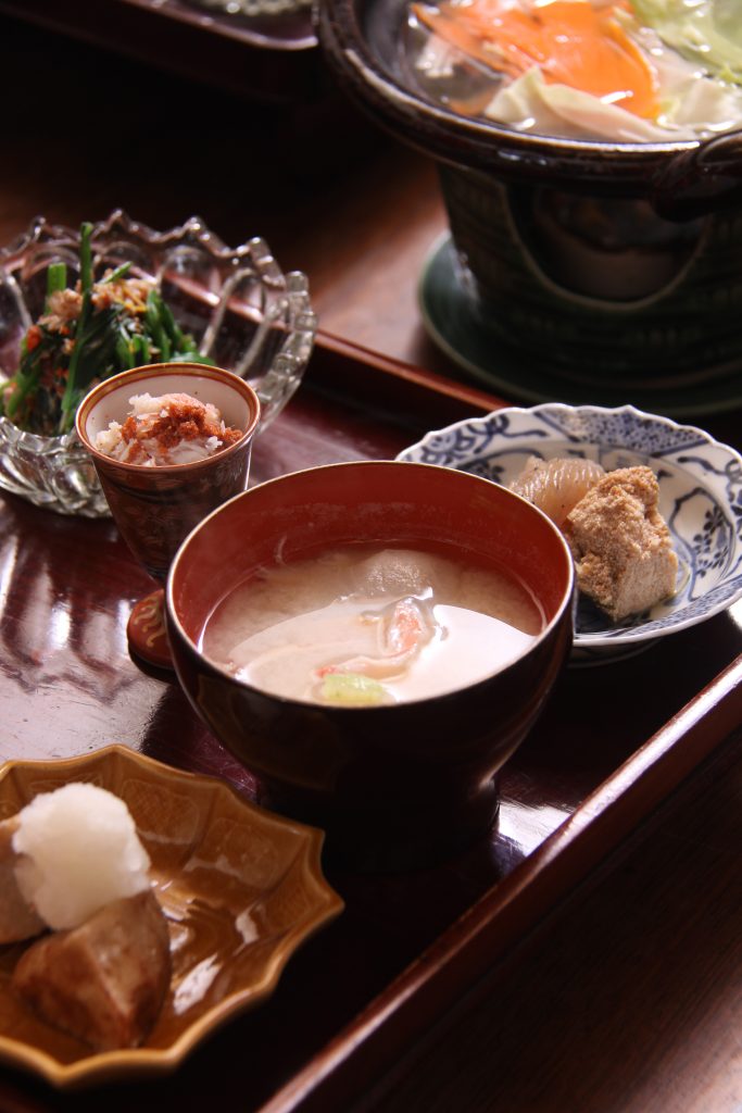 蟹出汁も取って、お味噌汁は蕪の白味噌仕立て。
