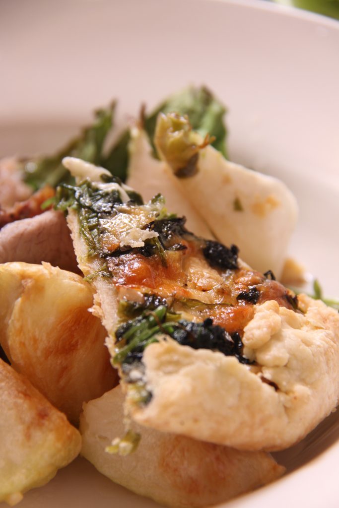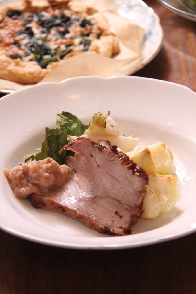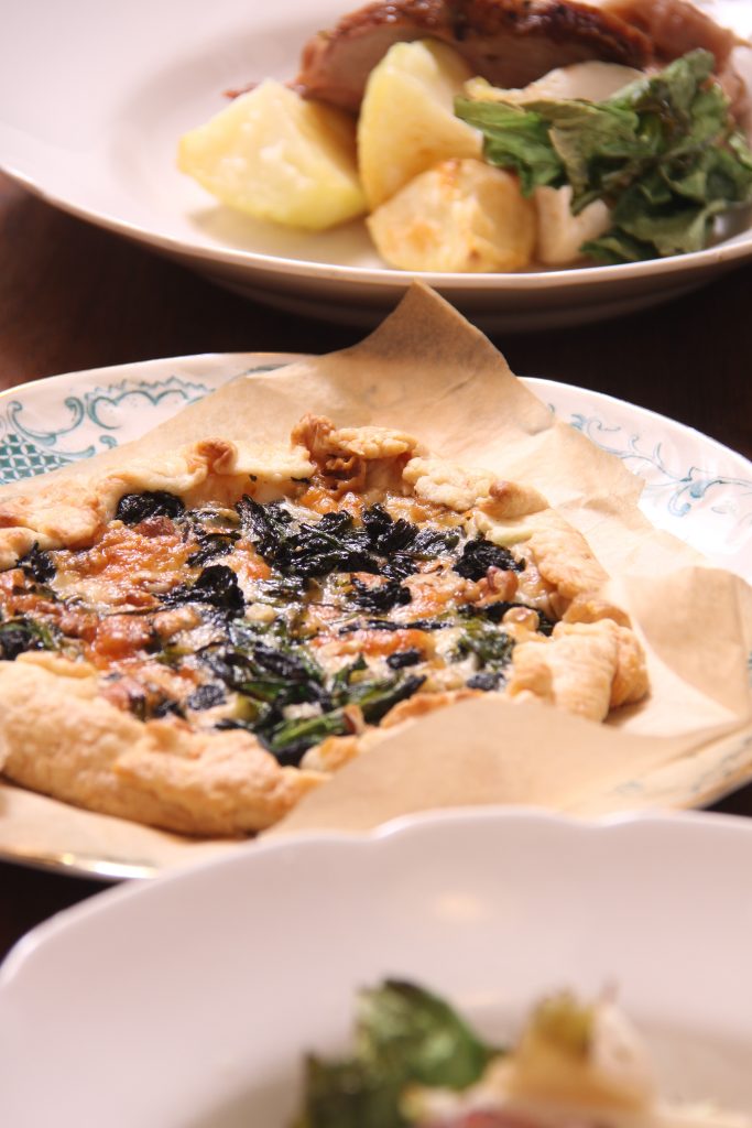後ろのピザみたいなものは、先日のアップルパイの生地の残りを使って、ラフなタルト。