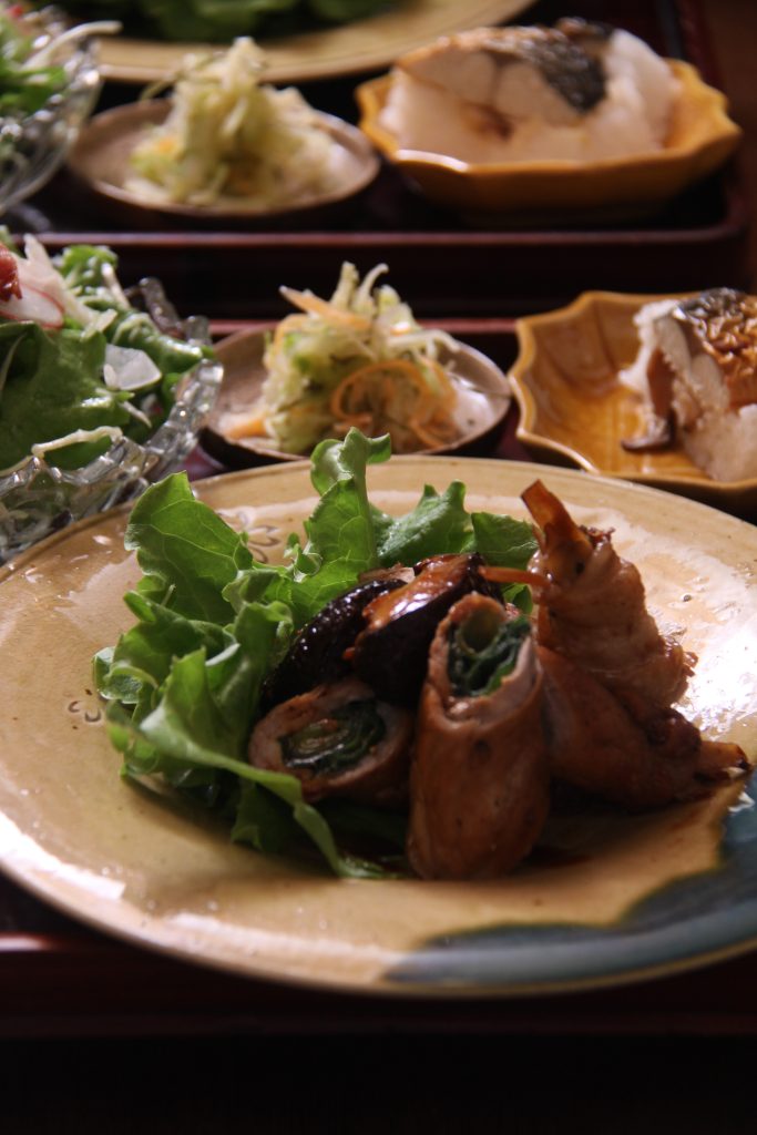 細ねぎとか、ゴボウとか、あり合わせの野菜の肉巻。
